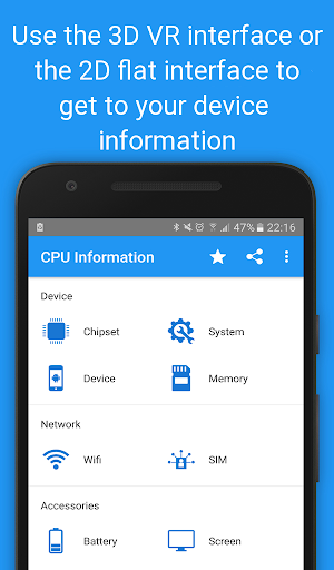 CPU information / Device Info is a small, great, and easy-to-use utility app to get all the information of your Android device through an exciting 3D based interface.