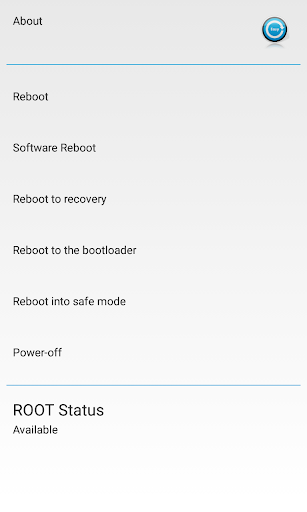 With Easy Reboot you can restart your phone in 5 different ways, now including the shutdown option. * Hardware * Software * Recovery * Bootloader * Safe Mode ROOT access required