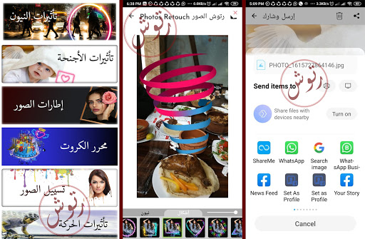 Retouch Photos in Arabic App, Pro App to Add Great Effects to Photos and Share Via Various Social Media Like WhatsApp, Facebook, Twitter and Many Others.
