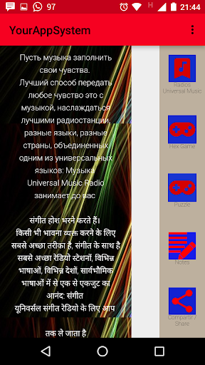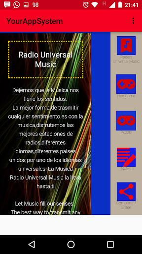 With Universal Music Radios, you will be accompanied by the music wherever you are, enjoy pleasant moments, listening to music, relax with the games that are included.