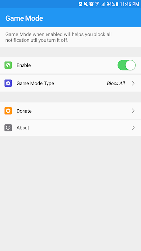 All notifications will be blocked smartly when you are entering any applications you want. Game mode will mute all calls, alerts, and media sounds too.