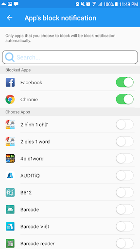 Block Specific: Alll notification will be blocked when you enter the selected Apps