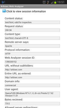 Please read more on http://arbisec.com/android-apps/web-analyzer/
