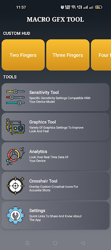 This application is a tool for gamers who want to become noob to pro. In this application we generate a perfect sensi for your use. We also provide you GFX tools and custom HUD.