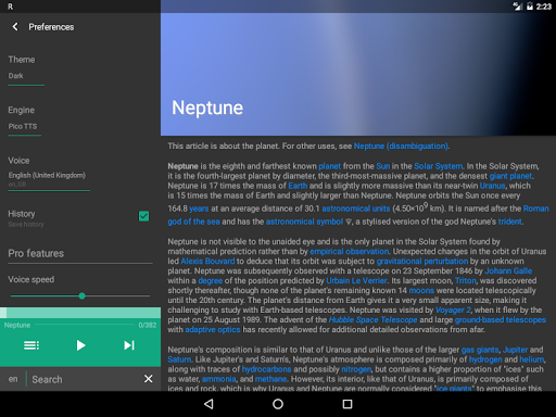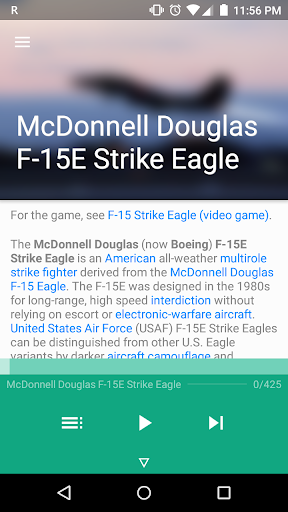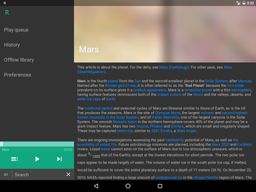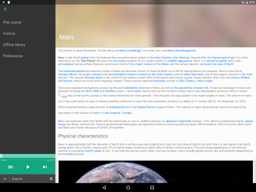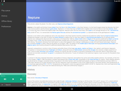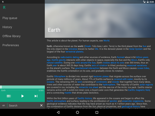 Play Wikipedia™ articles with Text to Speech (TTS) using this music player-like app.