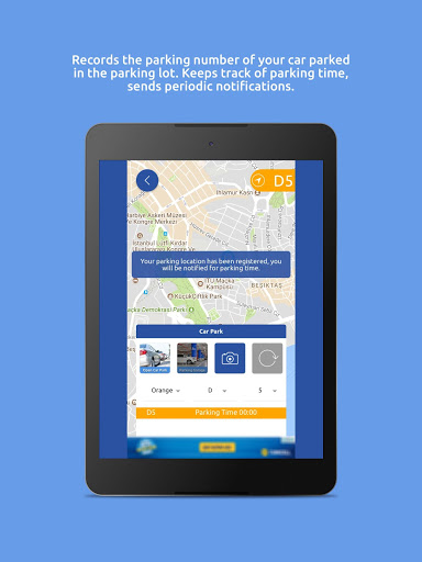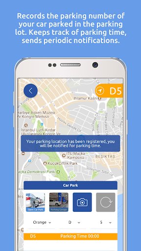 It records the location of the car you parked in the open area or indoor parking area. Keeps track of park time, allowing you to periodically notify your mobile device of the time period.