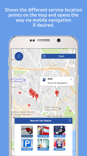 The nearest petrol stations, car wash companies, car services, car parks, medical centers, shopping centers are shown on the map and you can get directions via mobile navigation.