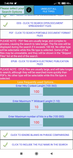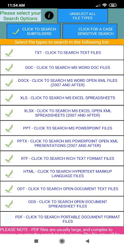 - Selecting file types to search