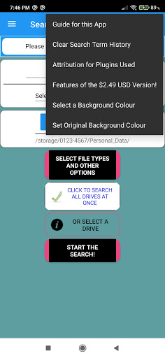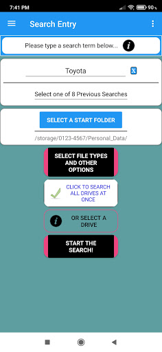 Suggestion: If you wish to search files stored on a cloud drive with FindWiz, you can make a copy to one of the drives on your phone, which also gives you an off-line backup.