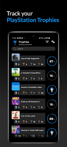 • Link and view your PlayStation Trophies, games and compare with friends.