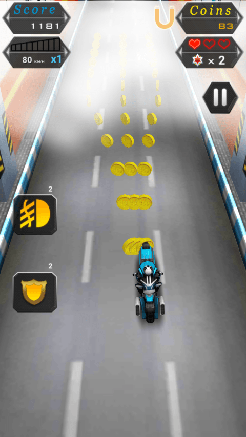 Driving the coolest motorbike in the city 7 kinds of motorcycles are your choice Evade the roadblocks, cross the fog, surpass the other cars Only the strongest men can drive the "phantom" in the city