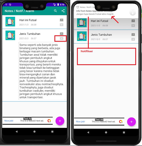 4. Um nicht zu vergessen, dass sie später bei 11 einkaufen, kann die Notiz als Alarm eingestellt werden, und später wird es mit 11 Datensätzen als Notif und Ringing angezeigt.