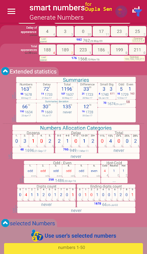 the last time a number appeared, the total times a number have appeared, and many more