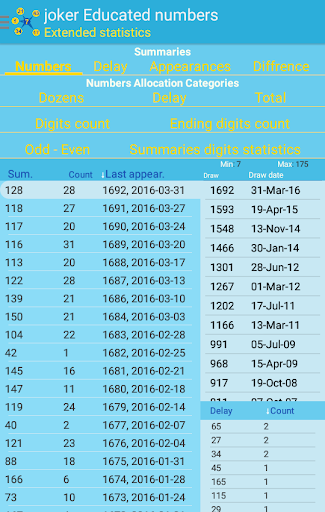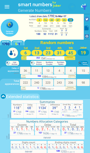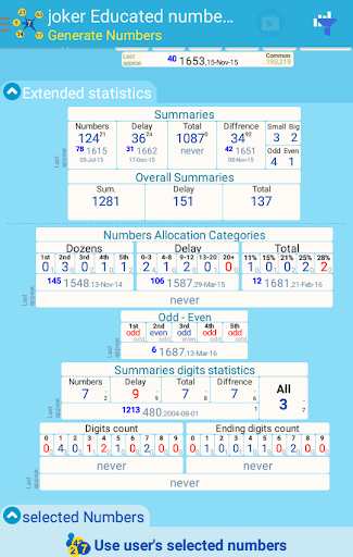 the last time a number appeared, the total times a number have appeared, and many more