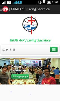 Aplikasi ArK Mobile dibuat untuk memudahkan jemaat maupun simpatisan GKMI ARK dalam mengakses website (www.gkmi-ark.org), bahan-bahan pembinaan, jadwal kegiatan mendatang, dan lain sebagainya.