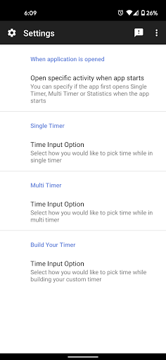 Open specific timers when the app starts such as Single Timer or Multi Timer. Get name suggestions for timer names based on previous timer names.