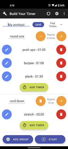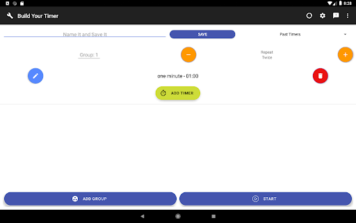 Build your own timer with laps and groups. Go back to your saved timer that you built before.