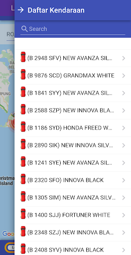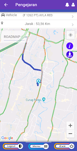 > Menu Pengejaran untuk menunjukan rute jalan dari perangkat anda menuju kendaraan yang anda pilih.
