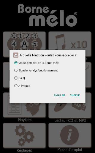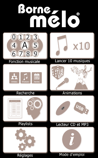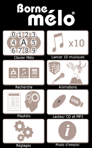 Programmez et gérez à distance les activités sur la borne Mélo grâce à votre tablette ou votre smartphone en téléchargeant cette application android (installée par défaut sur la tablette livrée avec la borne Mélo Symphonie). L’utilisation de cette appli vous permet d’accéder aux différentes fonctions de la borne sans passer par la touche « CTRL ».