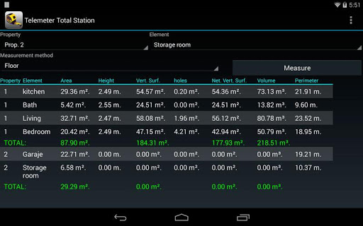This tool helps students and professionals from the Construction, architects, engineers and surveyors for the rapid collection of measures and automatic calculation of areas, volumes and vertical surfaces.