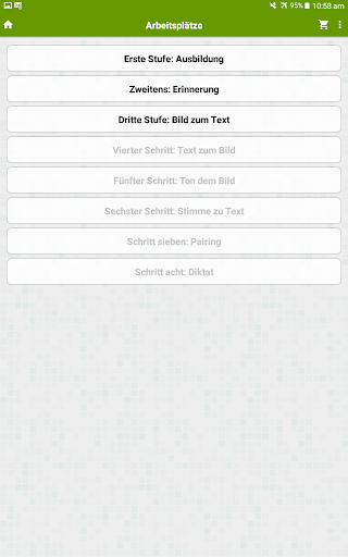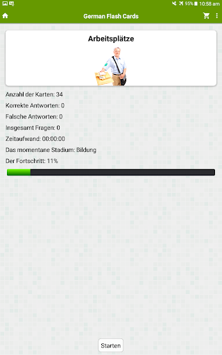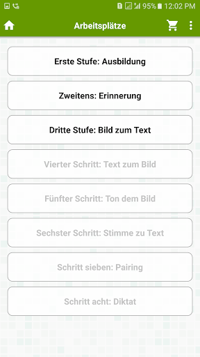 - 8 stages: learning, memory, image to text, text to image, voice to image, voice to text, matching cards, type in the answer.