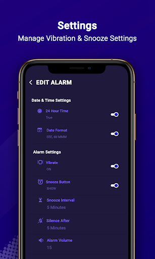 - Set alarm ringtone from phone gallery or use default alarm ringtone.