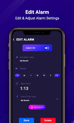With My Voice Alarm, add your voice as alarm tone, add text to convert text to speech as alarm tone, set multiple alarms and snooze, use audios as alarm tone and much more. The advanced My Voice Alarm app with get you best alarm service for daily use.