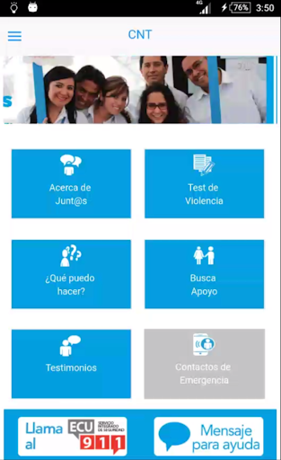 La aplicación Junt@s es una herramienta informática dirigida principalmente a mujeres que sufren de violencia de género, también está destinada a cualquier persona que detecte en su entorno una posible situación de violencia de género y a toda persona interesada en general.