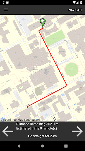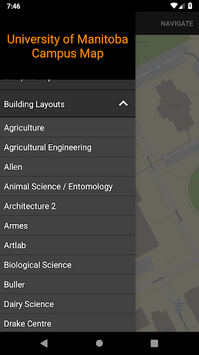 -Turn by turn navigation that support getting to and from most buildings, specific rooms in buildings (Currently supports some of Armes, Allen, and Machray) parking lots, and bus stops