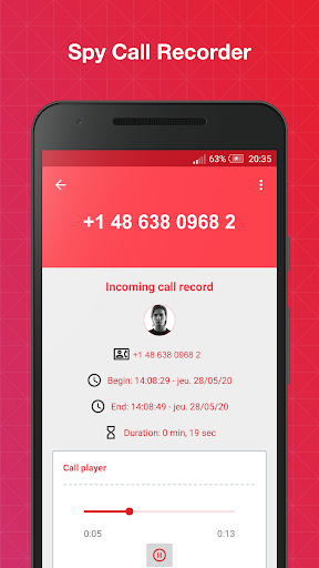 Spy call recorder is a free call recorder with more functions, such as share, play, delete and rename call recordings, multiple audio formats, add to favorites etc ... Take advantage of the recording of your calls with the automatic call recorder.