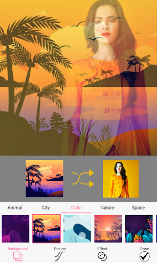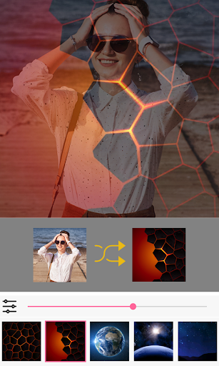 ➽ Blend Photo Editor provides categorized blend effects like: Animal, Space, Galaxy, Nature, City, Mountains hill, Colorful and more artful photo blend with multiple blend styles and pre-created previews to create perfect blend.