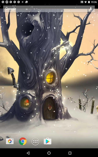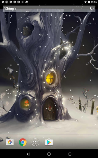 beautiful holiday live wallpaper featuring gentle snowflakes falling overtop fairy winter scene. It is the dreamy house of magic creatures that you experience on your device screen..