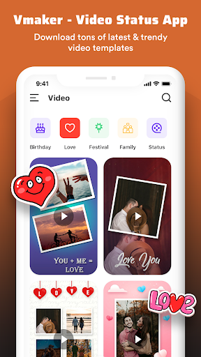 Developed by the artoon games, Fall in love with VMaker and never miss out on the latest trends by creating multi-genre vidstatus like love, birthdays, festival, family, friendship etc., Get to know about all the latest and trending hot topics in and around your nation. VMaker is Simply the best vidstatus maker & video status saver app for every social media freak.