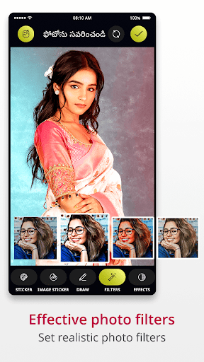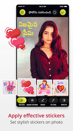 Decorate your photo with telugu sticker, image sticker, free hand draw and filter option.