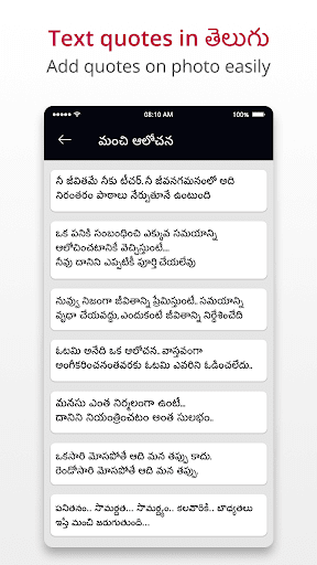 You can see various background and quotes categories in this text editor app like baby, birthday, dedication, family, farewell, festival, flower, friendship, funny, god, good morning, good night, poem, love, patriotic, sad, good thought and wedding. also insert photos from camera and gallery. Instead of photos, colors can also be placed in the background.