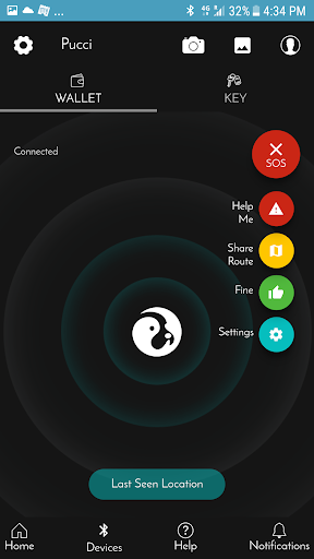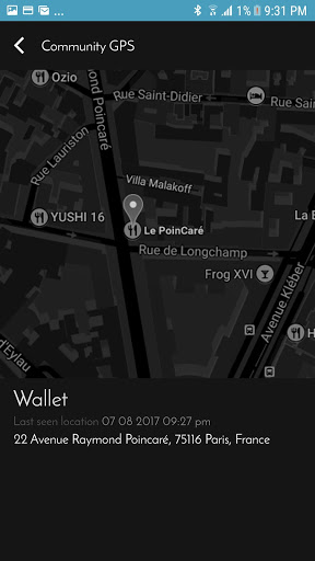 In case the item attached to the PUCCI device is lost or misplaced, retrieve the last seen location on the map.