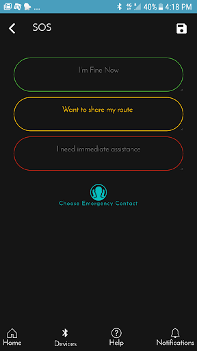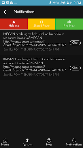 Trigger the SOSalert with 2 clicks of the button on the PUCCI device at an interval of approximately 2 seconds. The SOS sends a predefined message through push notification, email and SMS along with location to the emergency contacts.