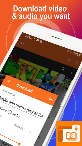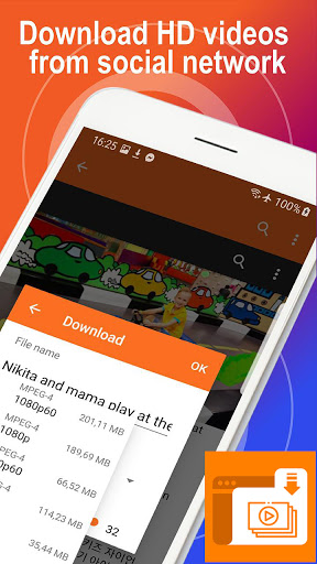 - Download manager with pause, resume, download in the background and download several files at the same time.