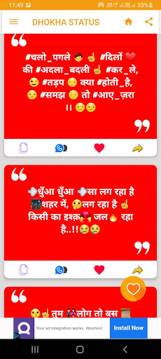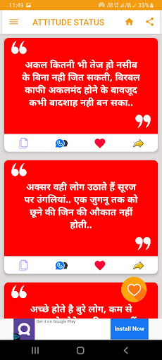 All Hindi Status app is an android application.Status App has user-friendly interface with easy to manage. If you have any suggestions or feedback feel free to email us.