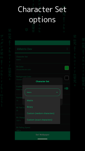 - Preview and set Matrix live wallpaper