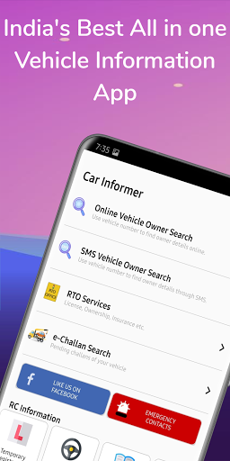 Our app is a one-stop solution for all your vehicle RTO related queries. You can find the owner's name of any vehicle like Bike, car, truck etc. with owner name, Registration name and 10 others details of the vehicle. You can easily get the owner's name of the vehicle parked outside of your house or any unclaimed vehicle by just entering the vehicle number in this app. If you are going to buy old vehicle then Car informer app is must to have as it provide all the owner's details, registration date, validity and 10 other details of the vehicle. Also you can get RTO office details of the vehicle easily.