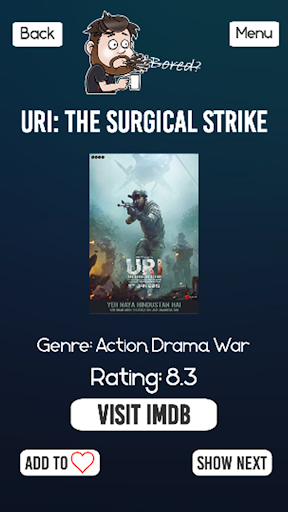 ★ Picking and recommending a random movie, web series, anime or game out of our huge collection of finely hand-picked entertainment database.