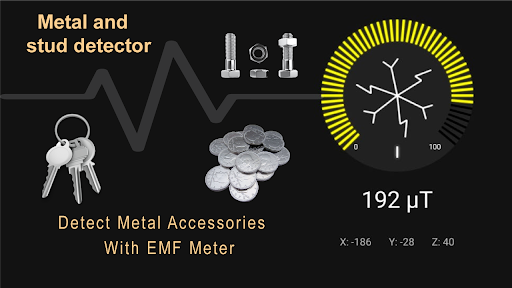 Metal Detector & Stud finder for Android is an App that uses electromagnetic field sensor or emf sensor to detect metals that show ferromagnetic properties. Metal Stud finder app uses same magnetic field sensor to find out the stud and beams that are made up of metals that shows ferromagnetic properties.