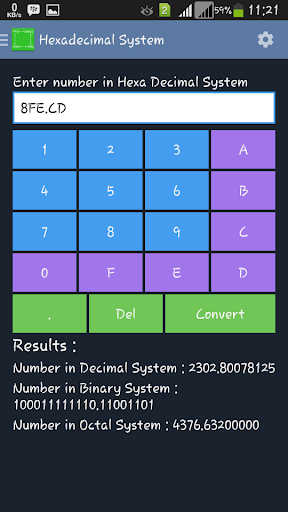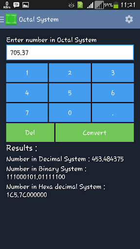 Number System Converter is a tool which allows you to convert a number for one number system to other three number systems. For example the app can convert a binary system number to hexadecimal system, octal system, and decimal system. The app can covert both floats (Eg:123.54) and Integers(Eg:121) values.