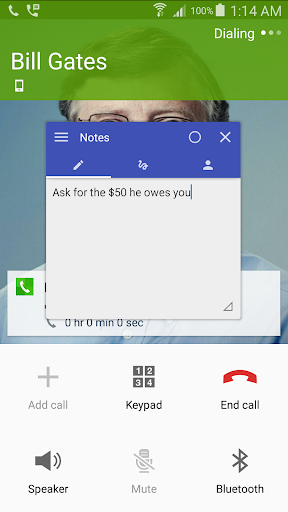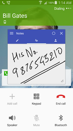 Lets you type notes and draw doodle in a floating window during an incoming or outgoing call!