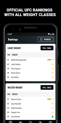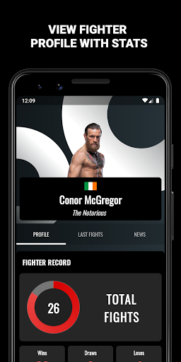 ✔ Lookup all you need to know about your favourite fighter including his record and all time stats.