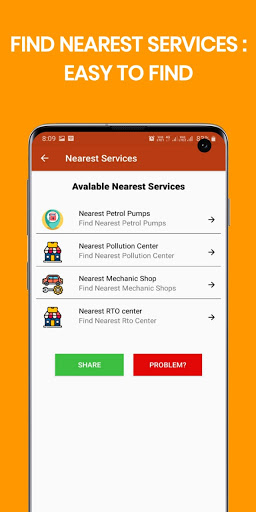 Vahan info app also helps you to locate the nearest location of the Petrol pump, RTO office, Nearest pollution centre.
