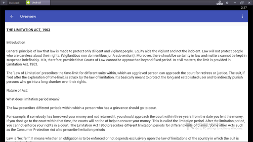 It is divided into three parts in which first part contains the overview of the limitation act and the second part contains the bare act of limitation act with latest amendment and the last part contains the case laws which is important as examination point of view.