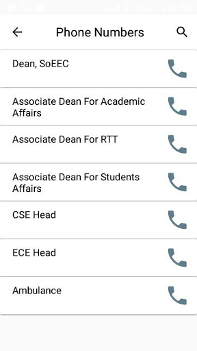 Addresses: Where is hall number 125? What is the phone number of campus ambulance? The app knows it all.