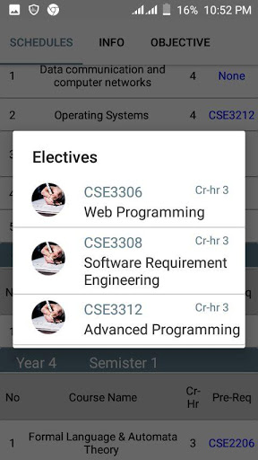 Courses: get detail information about your courses. Prerequisites, list of reference books and course outlines are included.